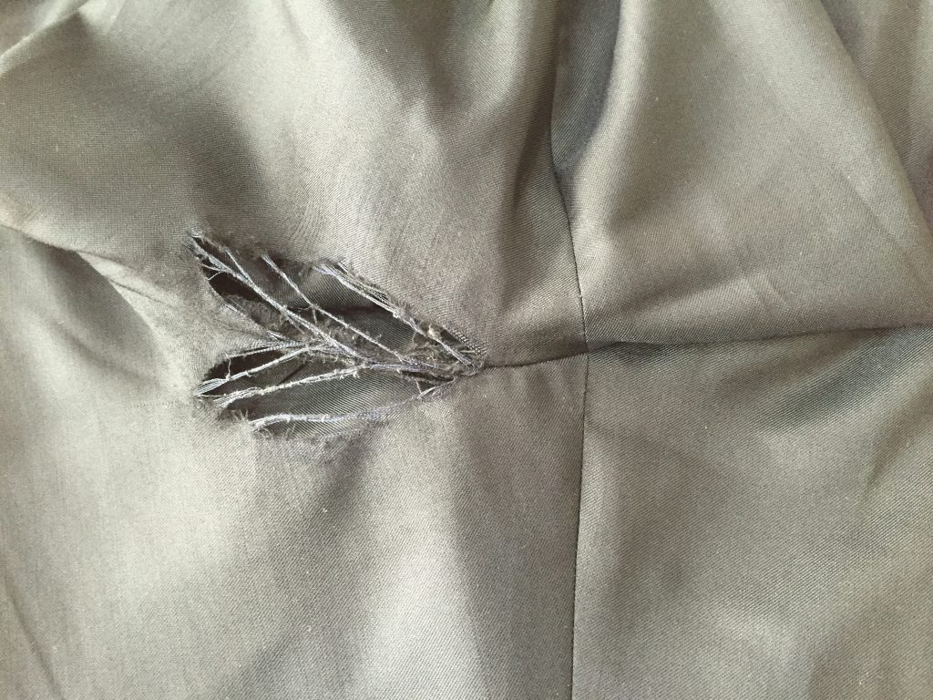 まず、完全に擦り切れどころが大きく穴が開いてしまって欠損部分が痛々しいですね。