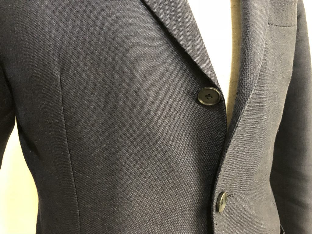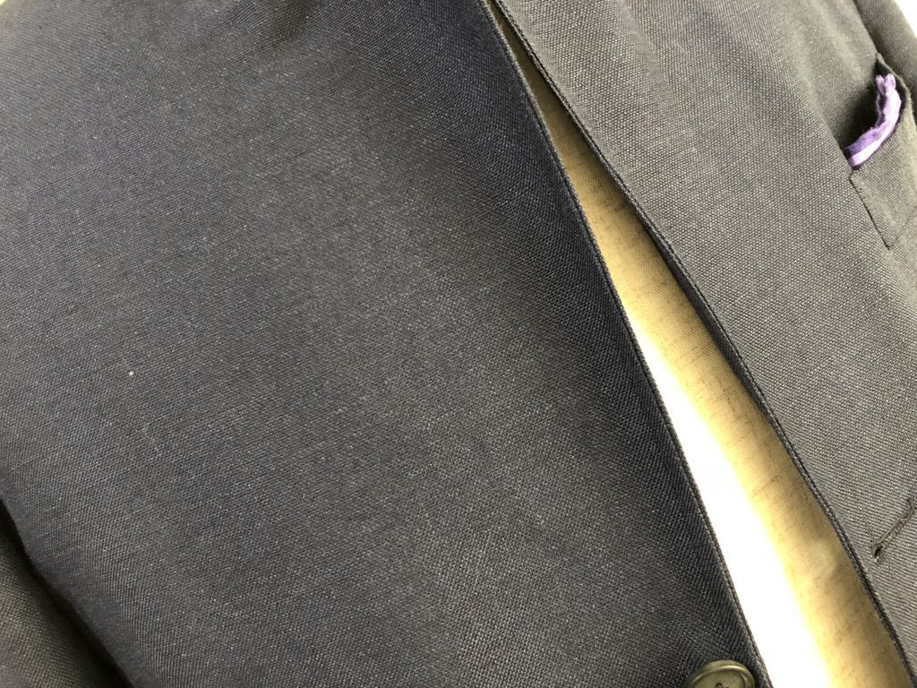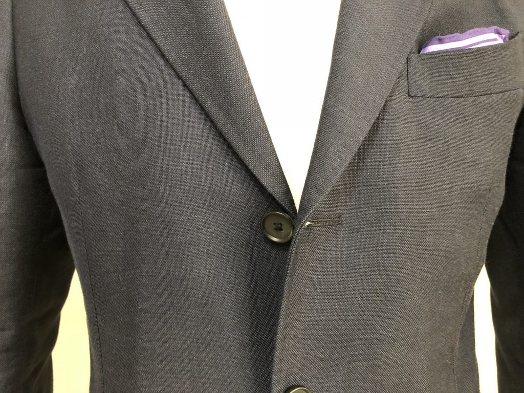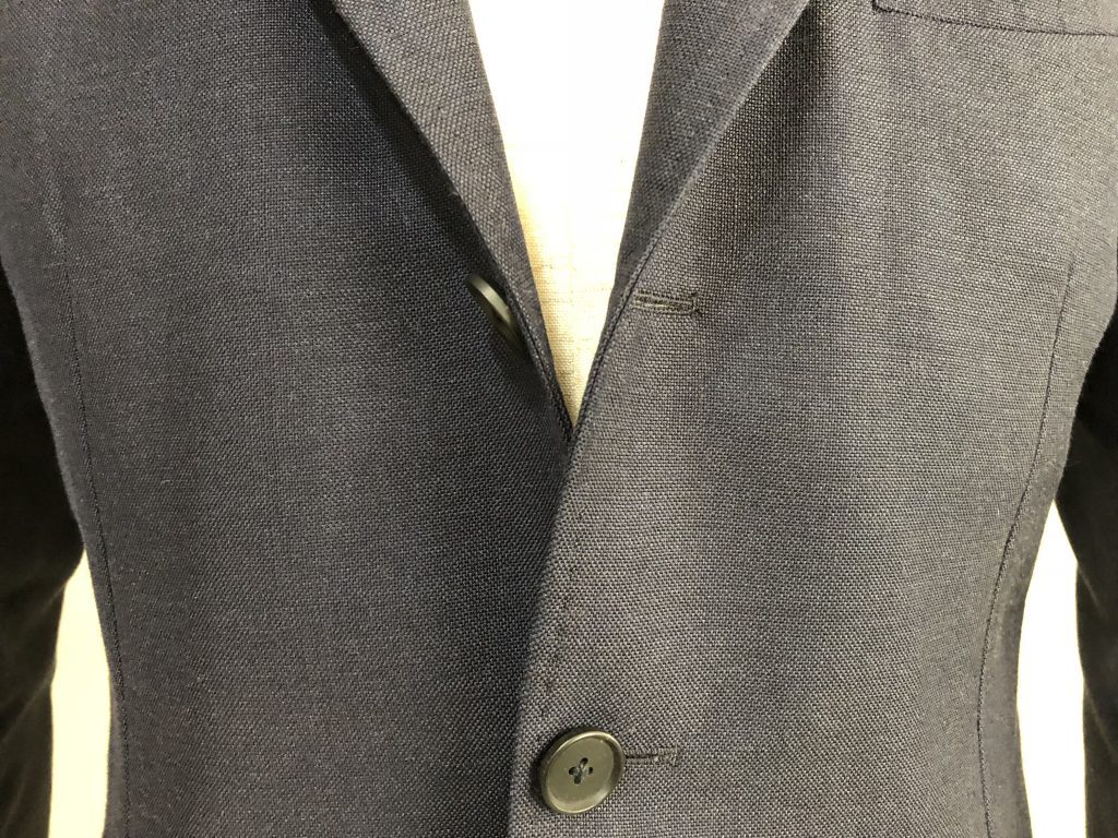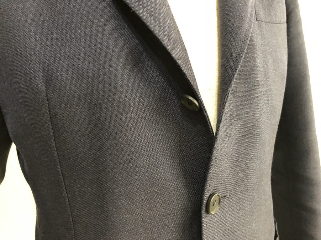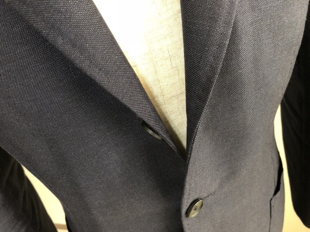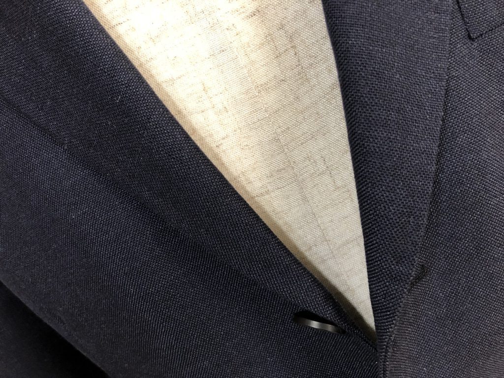 実は近年のスーツの多くがコストダウンを極める為に、この部分を簡略化(簡単に作れる接着仕様)してしまい、このキレイなロールが出ない様になってしまっています。
