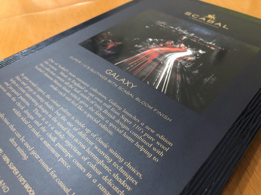 目付320gの英国産というスキャバルを代表する主力中の主力コレクションで、現実的な使い勝手からするとベストでしょう。