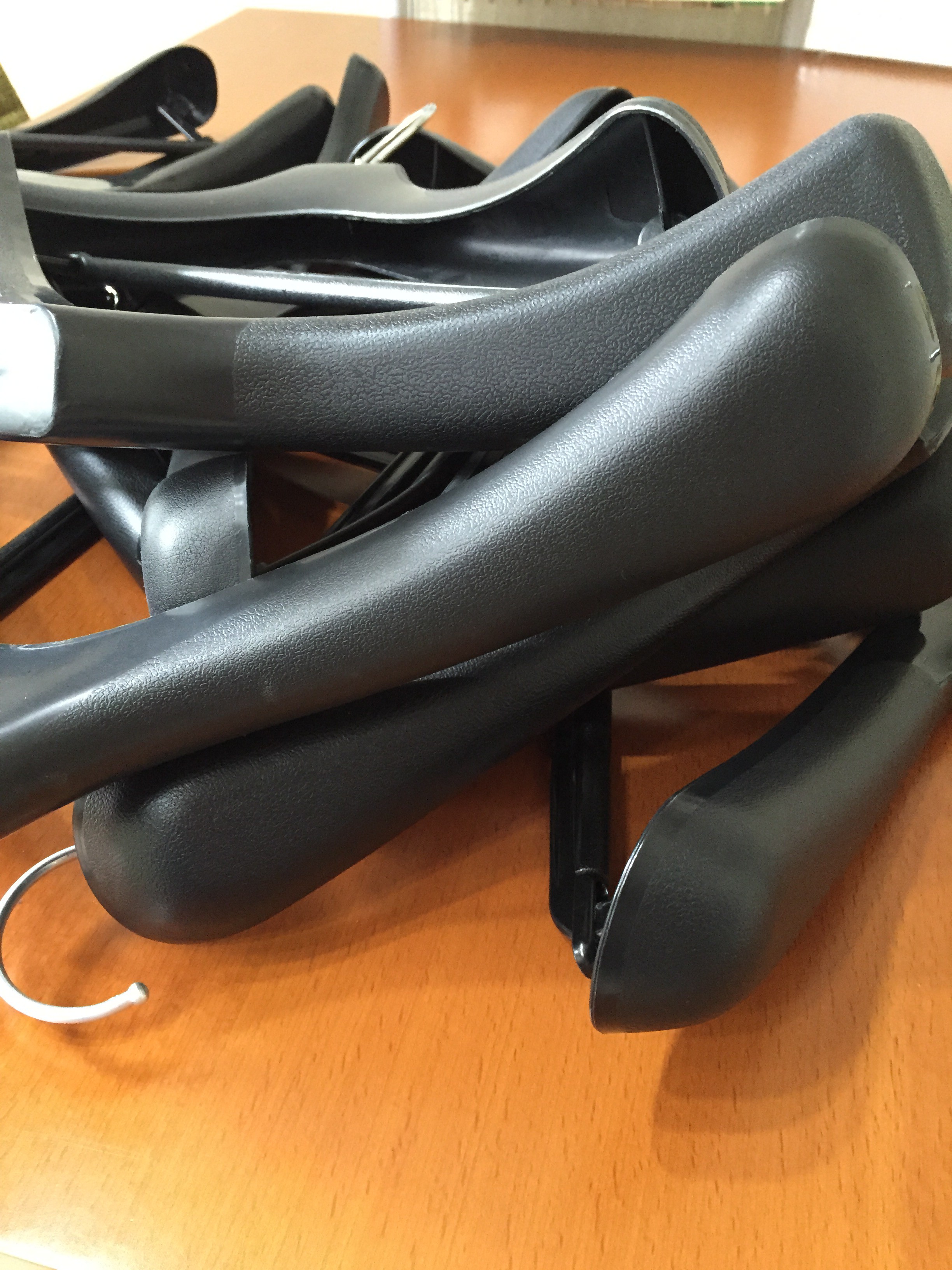ジャケットのハンギングに最適な、肩幅大き目のハンガーが余ってます。