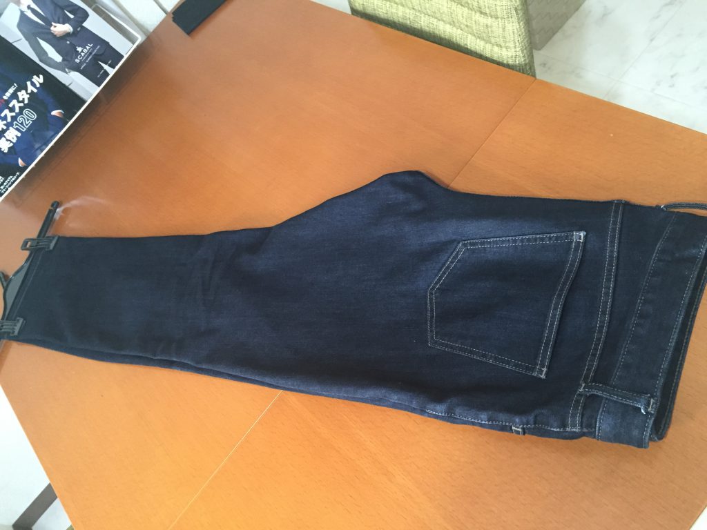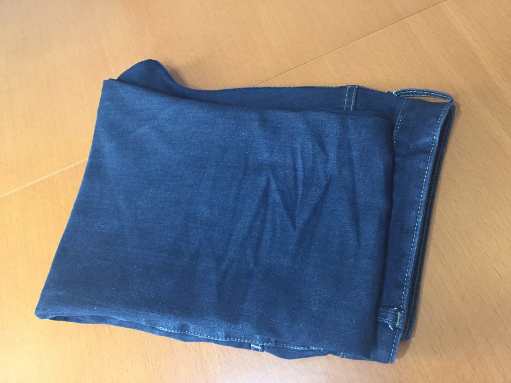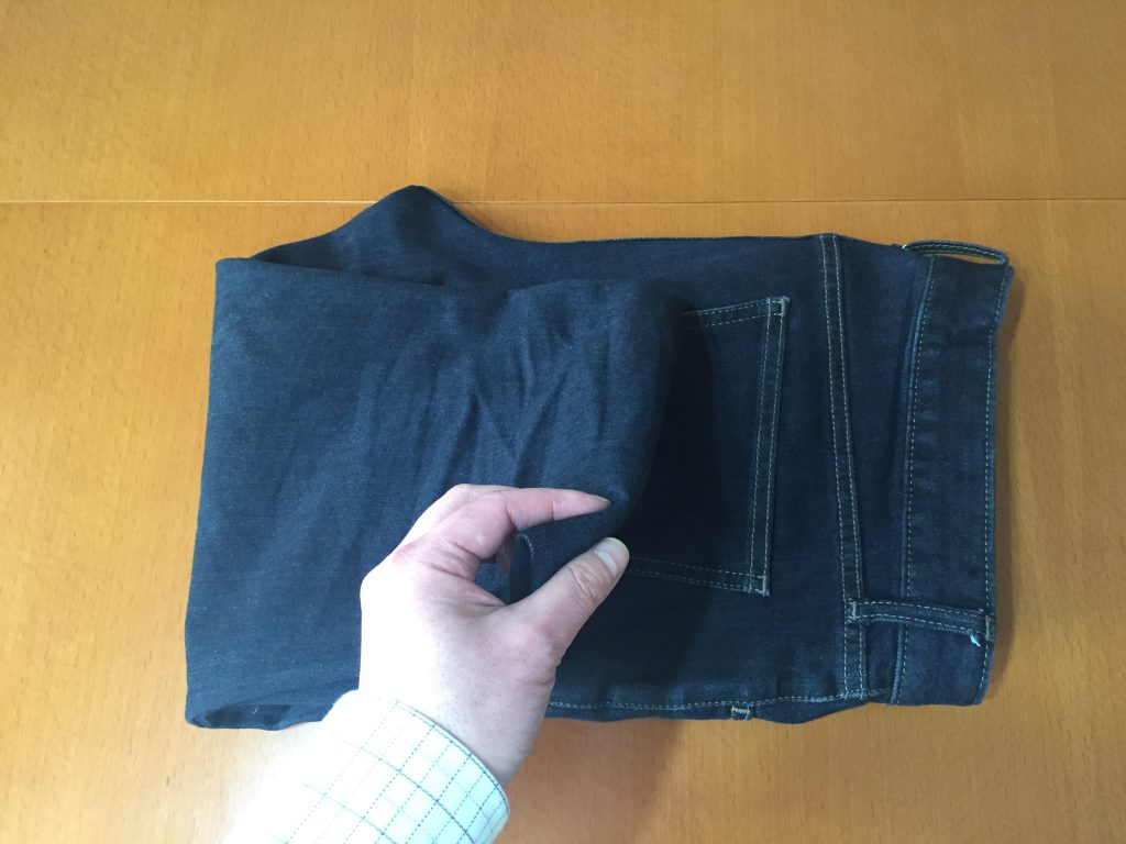 ジーンズをたたんでしまう方法をそのまま伸ばす形にするだけです。