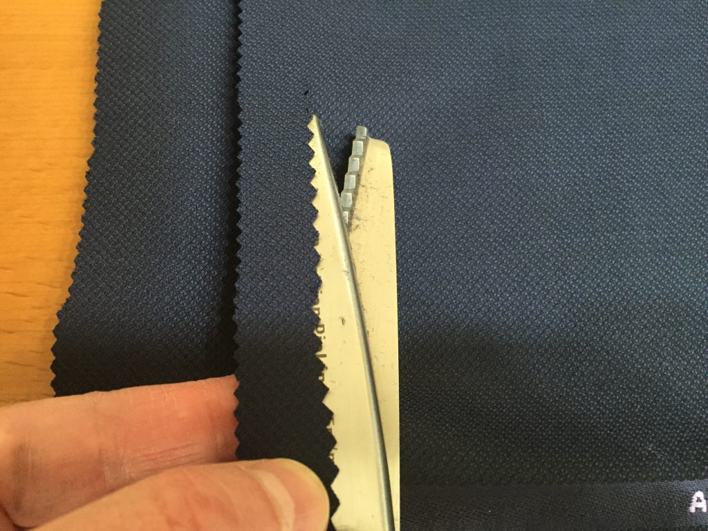 実際はハサミ入れたくらいでほぐれてくるような粗悪な服地をボクは扱っていませんけどね。