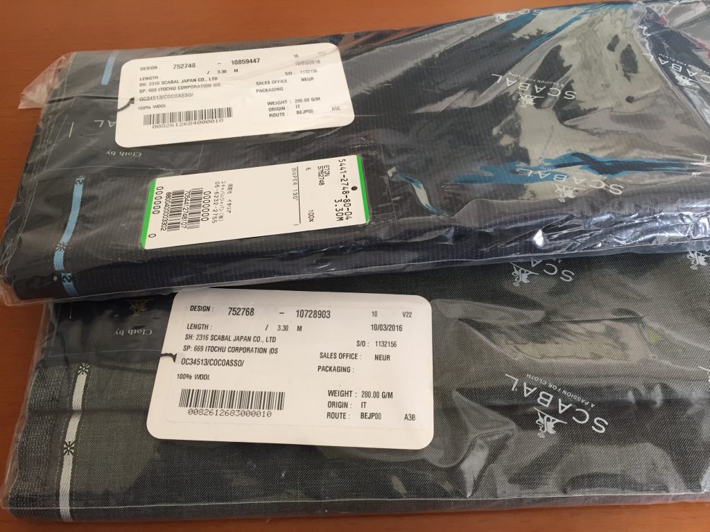 日本の商社さんや、葛利毛織さんなどの日本の織元からは直接そこから送ってもらいます。