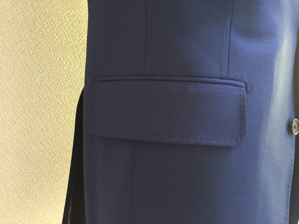 腰ポケット、そのフタのことをフラップと言います。日本語で雨避けともいい、タキシードなどのフォーマルでは付けないのです。外を歩かないからね。
