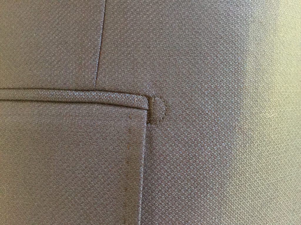ちょっとマニアックなパーツ名。スーツは通常3枚のパーツに分かれます。前身頃、後見頃、そしてわきの下の部分を細腹と言います。