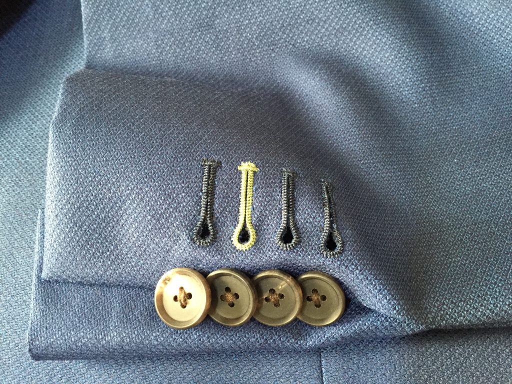 袖釦は開くようにするのが本切羽(セッパ)、ダミーの開かないのが空き見せ。最近は袖釦は重ねるのがオススメ。これを通称ナポリ風ボタンなんて言います。