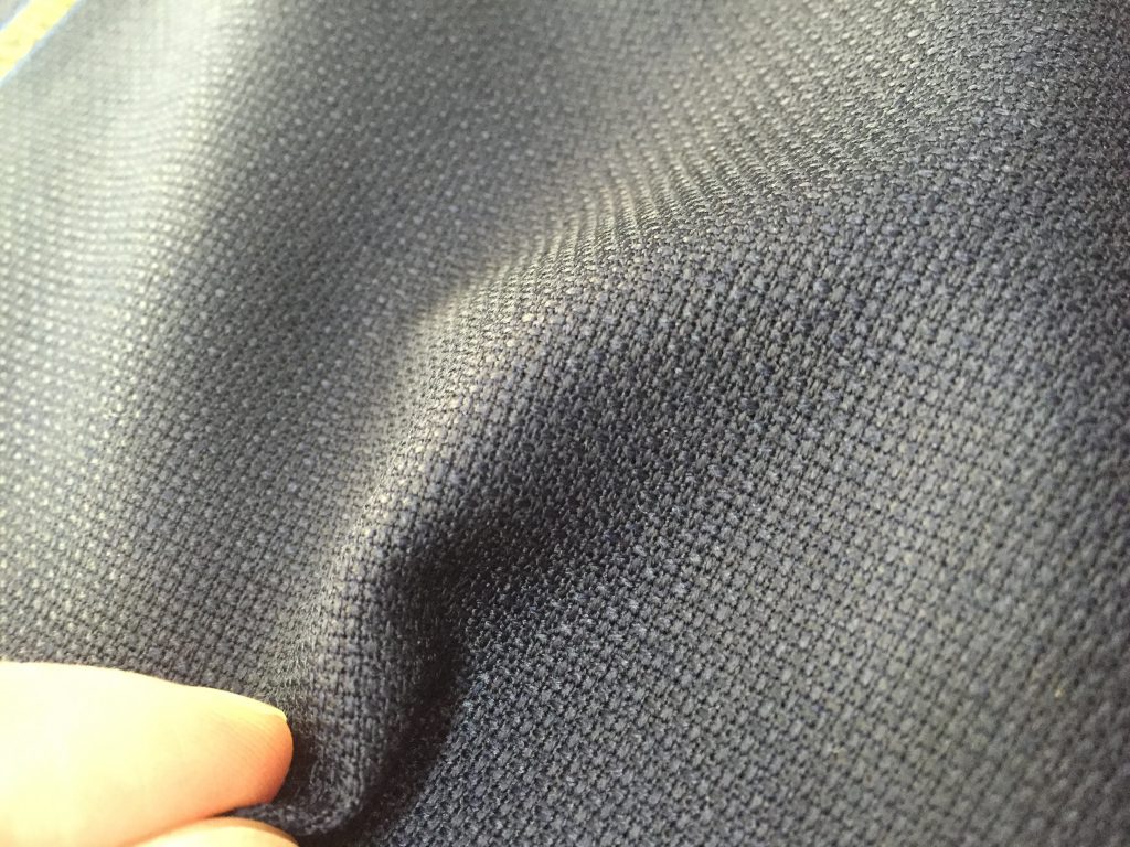 柔らかな風合いになるウールと違ってパリパリした素材ですから、着心地としての涼感が得られます。また、熱の遮蔽性が高いですから、日差しの強い日にも快適です。