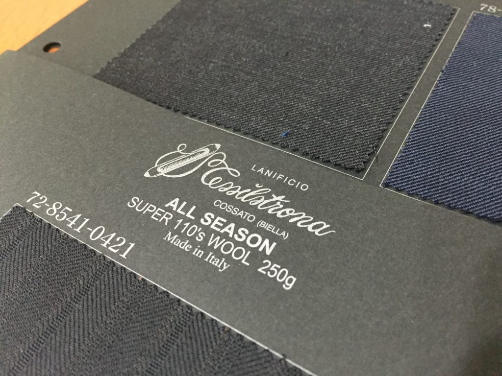 営業支援スーツとしての条件は、あくまでもワードローブとしてキチンとローテーションの中に組み込めるかが大前提ですから、いたずらに高額でデリケートな生地は好みません。
