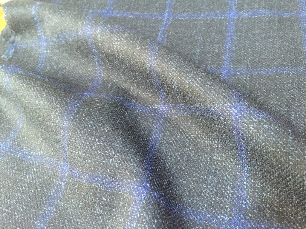 すると、こんな感じのフワッとした軽くて、杢調(まだら模様ぽっい素材感のこと)で、コントラストがハッキリしたブルーのウィンドペン柄が選べたというわけですね。