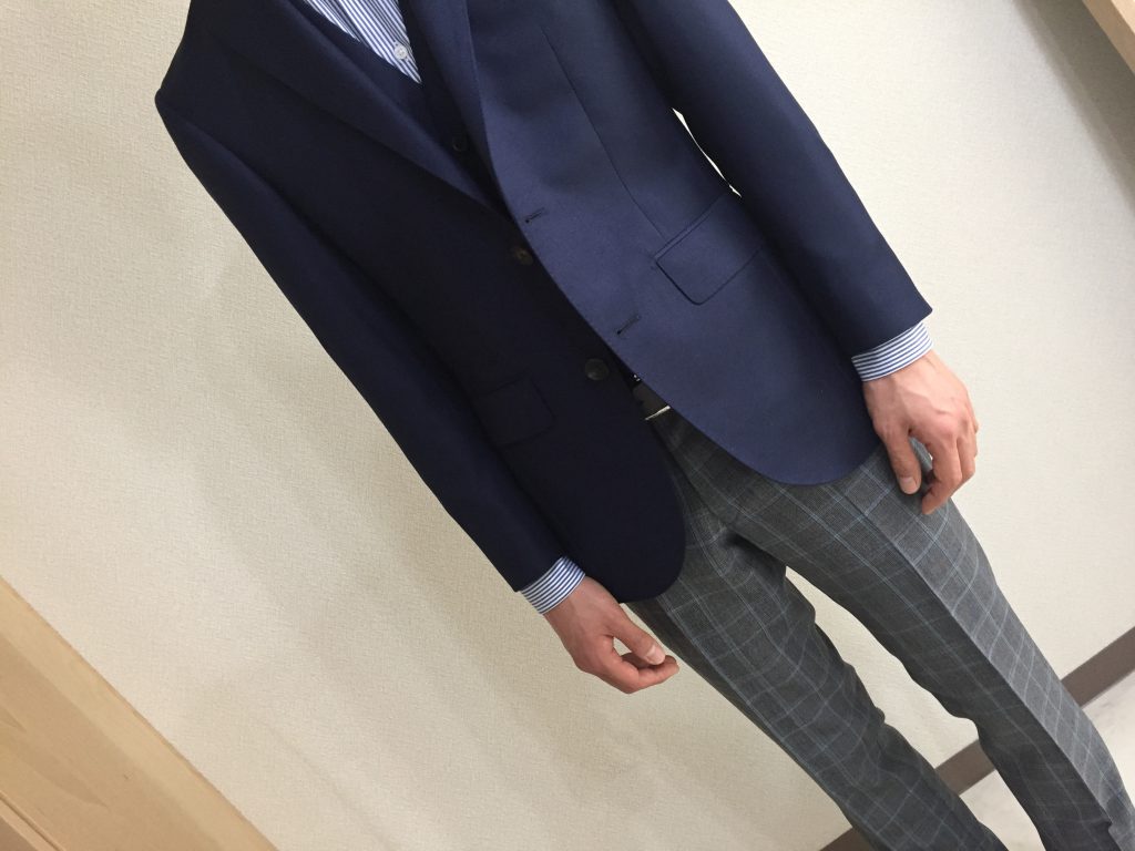 そこで、スーツでありながら、パンツを別生地にすることによってジャケパンにもなるようにセッティングして作成するというのがあります。