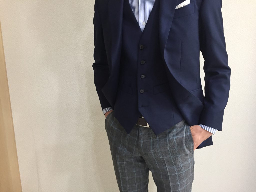 最後に、今回はジャケットと共生地のベストもいい感じです。