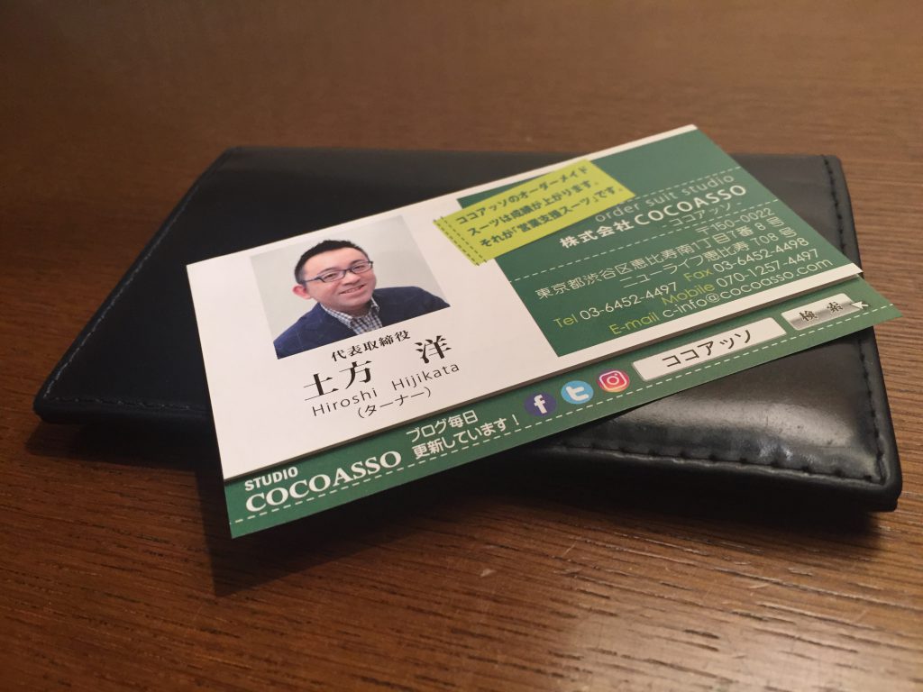 ボクの名刺はかさばらないようにあえて薄い紙質にしています。 肉厚の紙だと名刺入れが膨らんじゃいますよね?