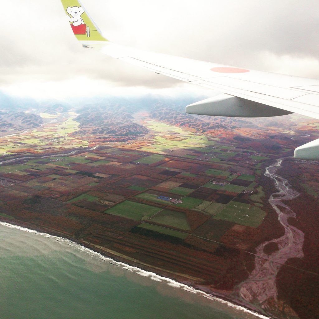 とかち帯広空港に着陸態勢に入った時に見えた十勝平野