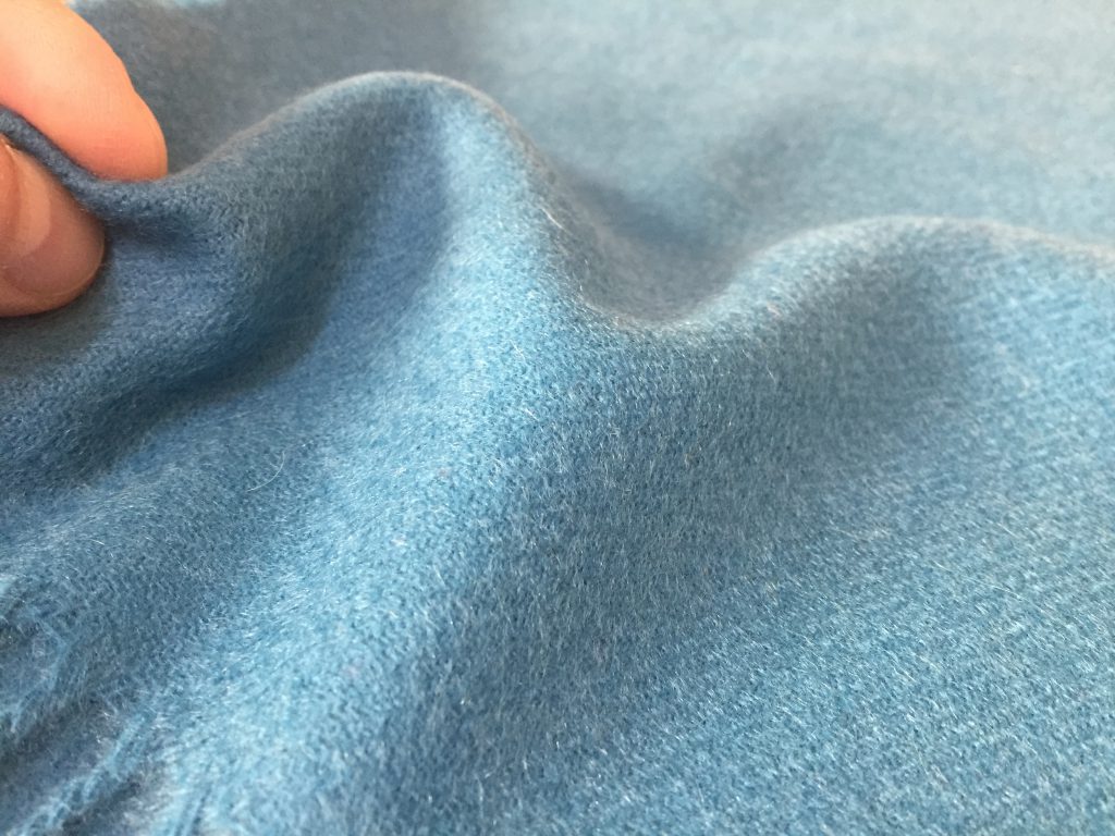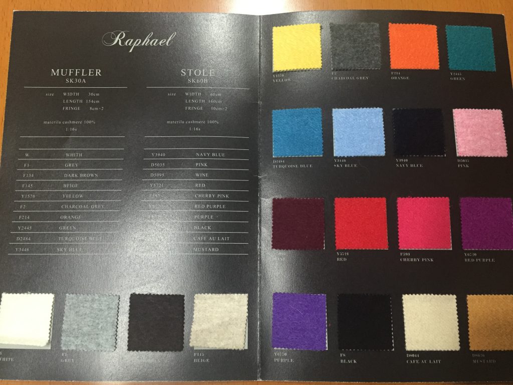 世の中にはカシミアという素材のマフラーはどこにでもあると思いますけど、ボクが扱っているのは仕立屋さんだから手に入る大元のホンモノです。