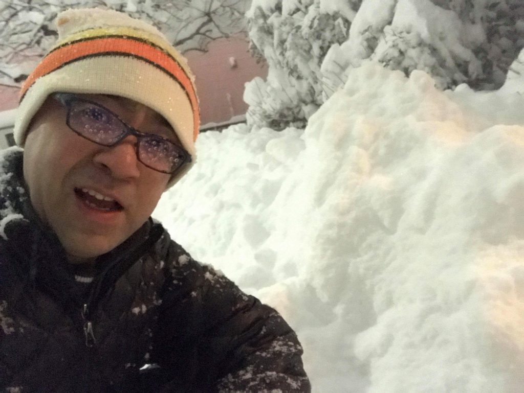 みるみるうちに積もってゆく雪をみながらまだ余裕です。