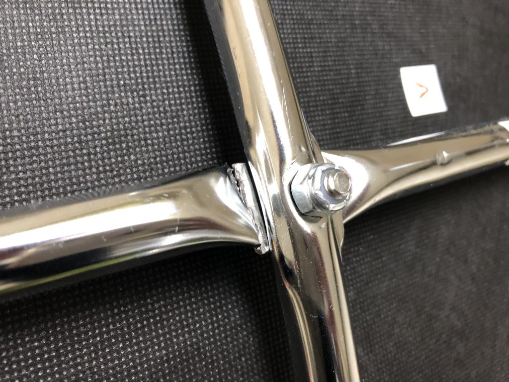 いきなりぐにゃりとし感覚と共にイスの足が折れました。