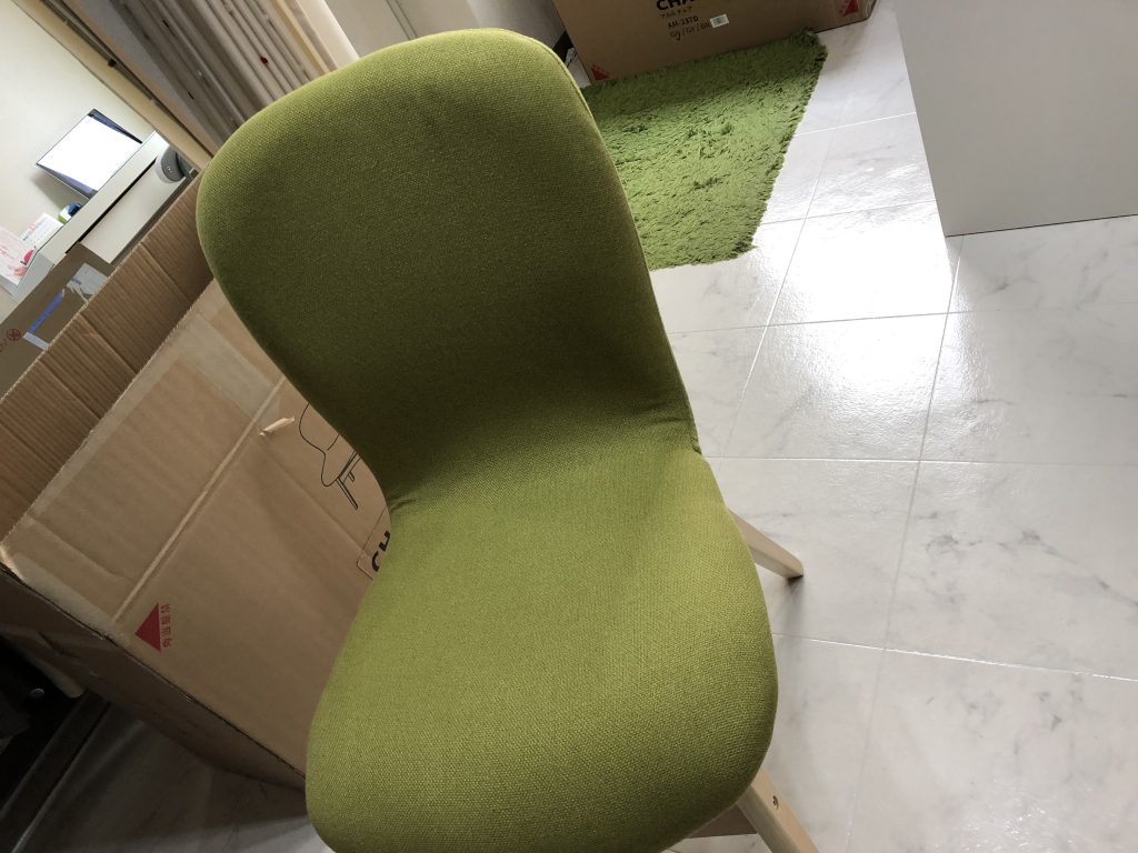 今回は前回の轍を踏まないように足が折れにくい木材の形状を選びつつ、座面は底抜けしないような構造を選びつつ、クッション性も考慮して、デザインバランスもスタジオに合わせてた一体成型にしつつ、カラーもココアッソグリーンでまとめようと思っていましたので、まずまず理想のイスに出会えたかなと思ってます。
