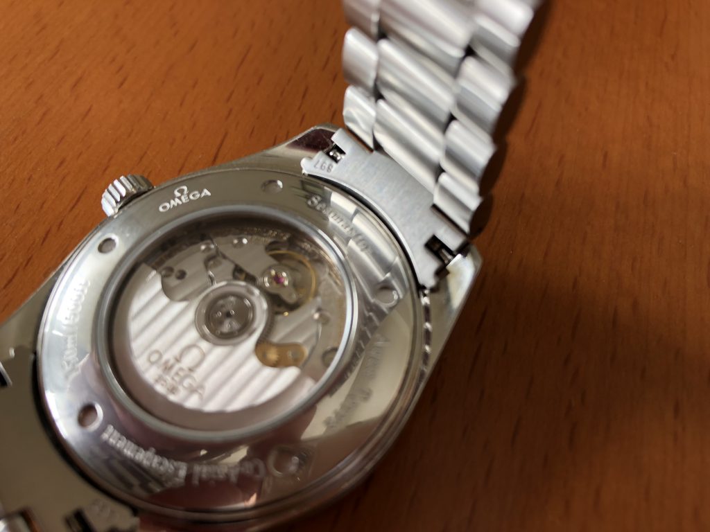 今ではオメガのほとんどのモデルに実装されているコーアクシャル機構(難しいからググってね)を最初に搭載したCal.2500を組み込んだ当時は最新のヤツでした。