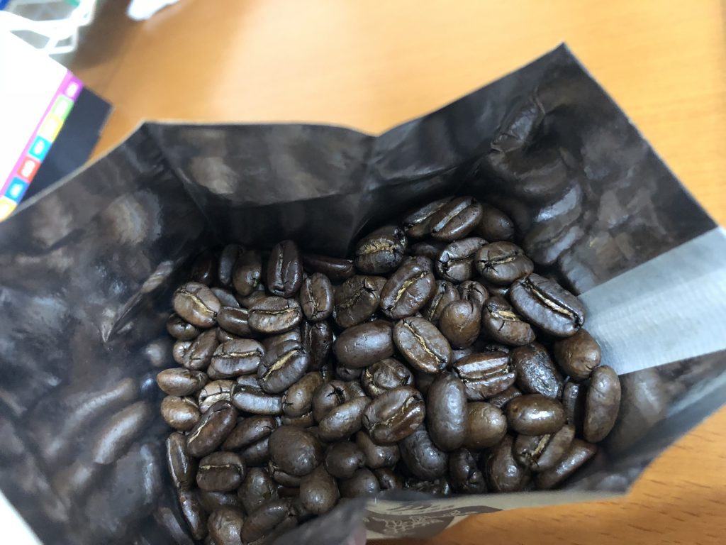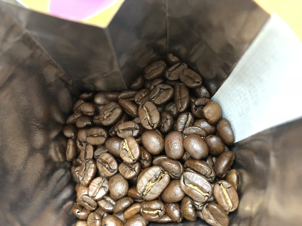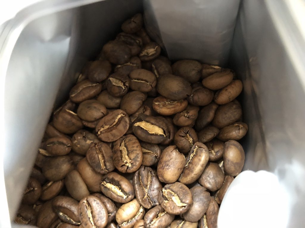 深煎りよりも茶色いくらいが中煎り。いくらか水分が残っていて固めです。