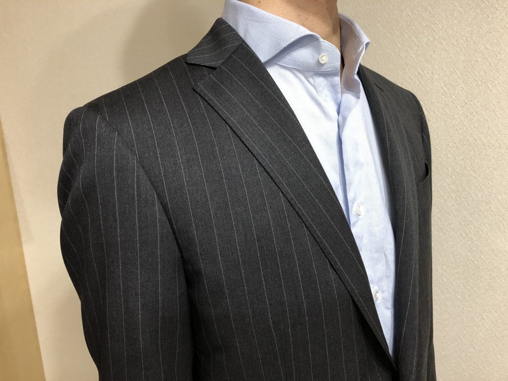 今回たまたまスーツをご納品させていただいたお客さまがいい感じに比較対象となるジャケットをご着用されていらっしゃいましたので、画像をお撮りさせていだき、ブログ掲載もご許可頂きました。