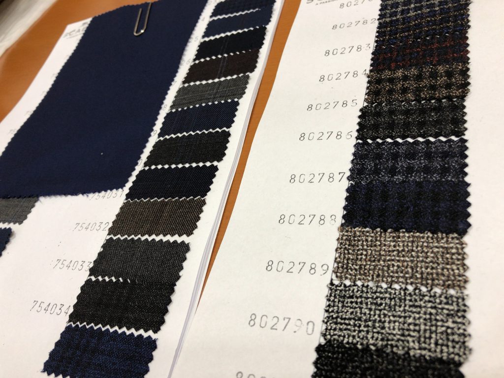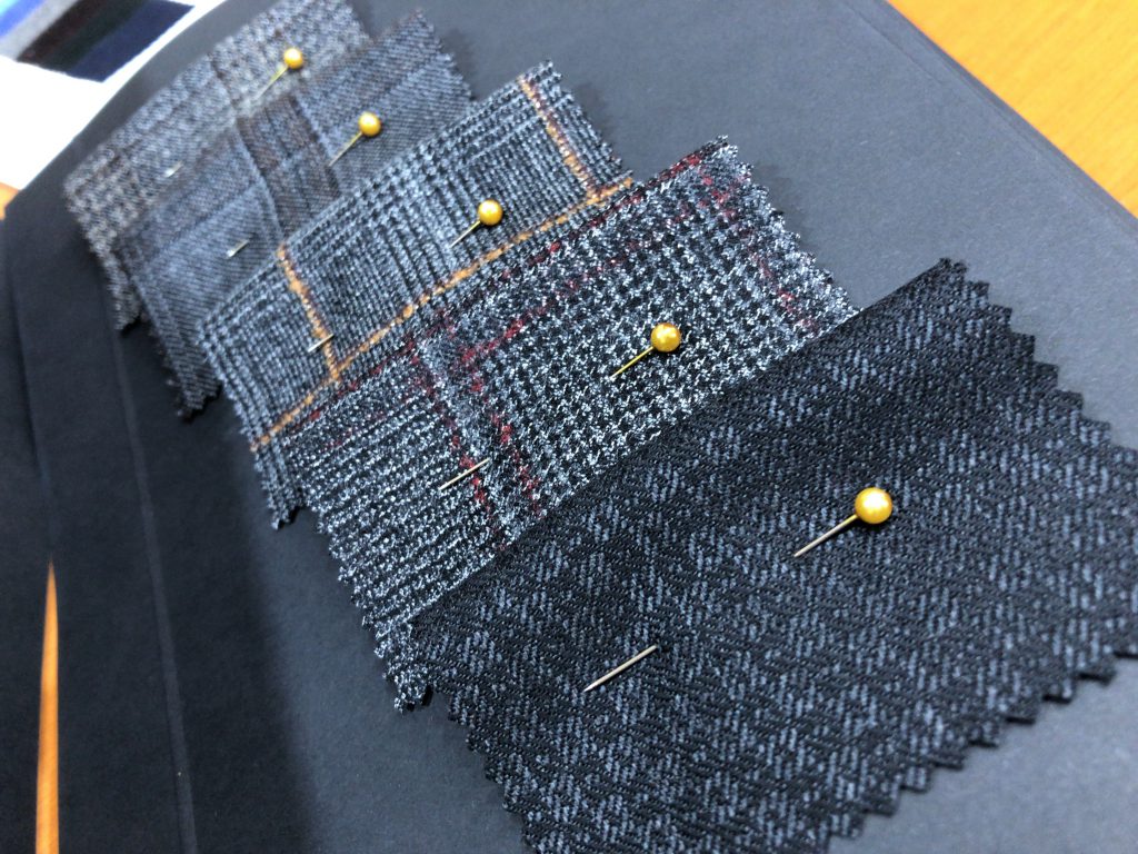 実際にはまだ手に入らないのですが、そんなまだ市場に出回らない手作りのサンプルを見ることが出来るのは仕立屋さんの特権ですね。