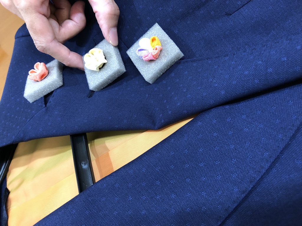 ジャケットのフラワーボールにワンポイントアクセントとしていかがでしょうか?
