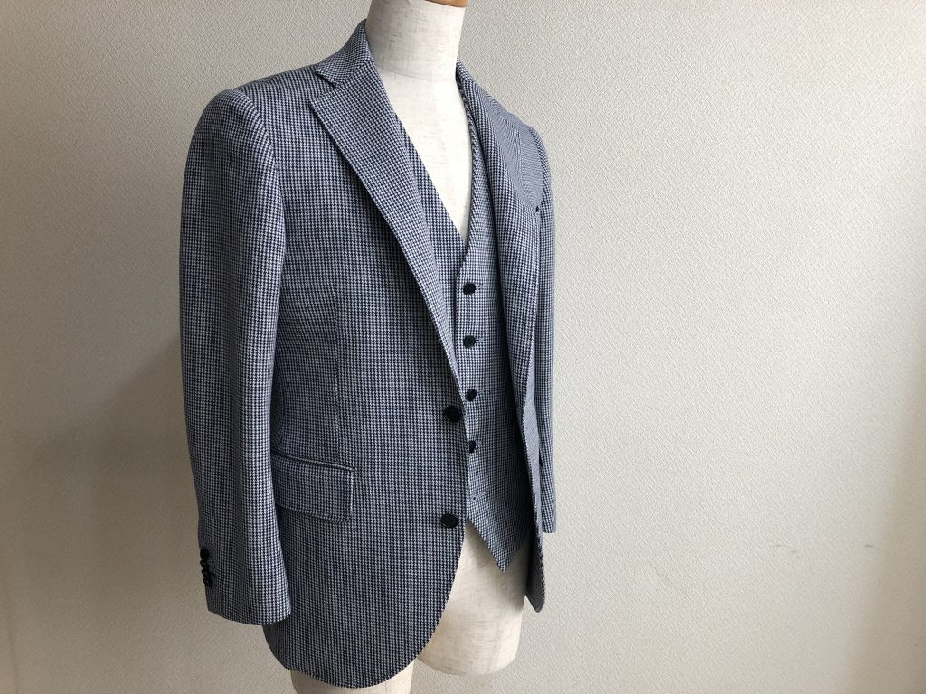 千鳥格子が青いので、上下のバランスも違和感がないはずです。