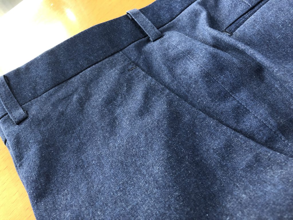 ですからポケット類も通常のナナメの箱型にしたり、裾の仕上げはタタキにせずダブルカフスにしています。