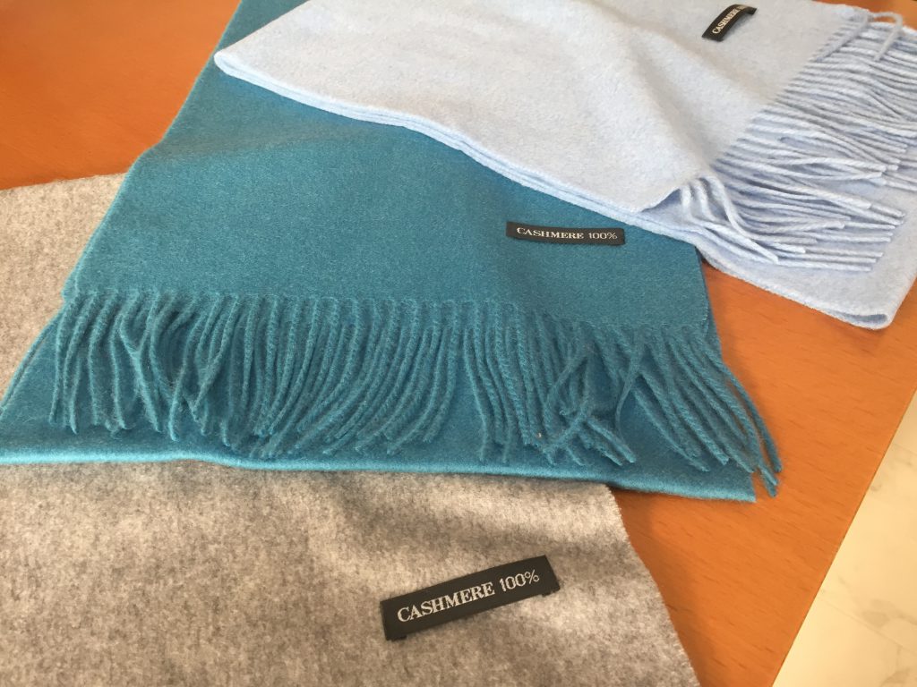 カシミアですのでチクチク感もなく色柄も約20色ございますです。