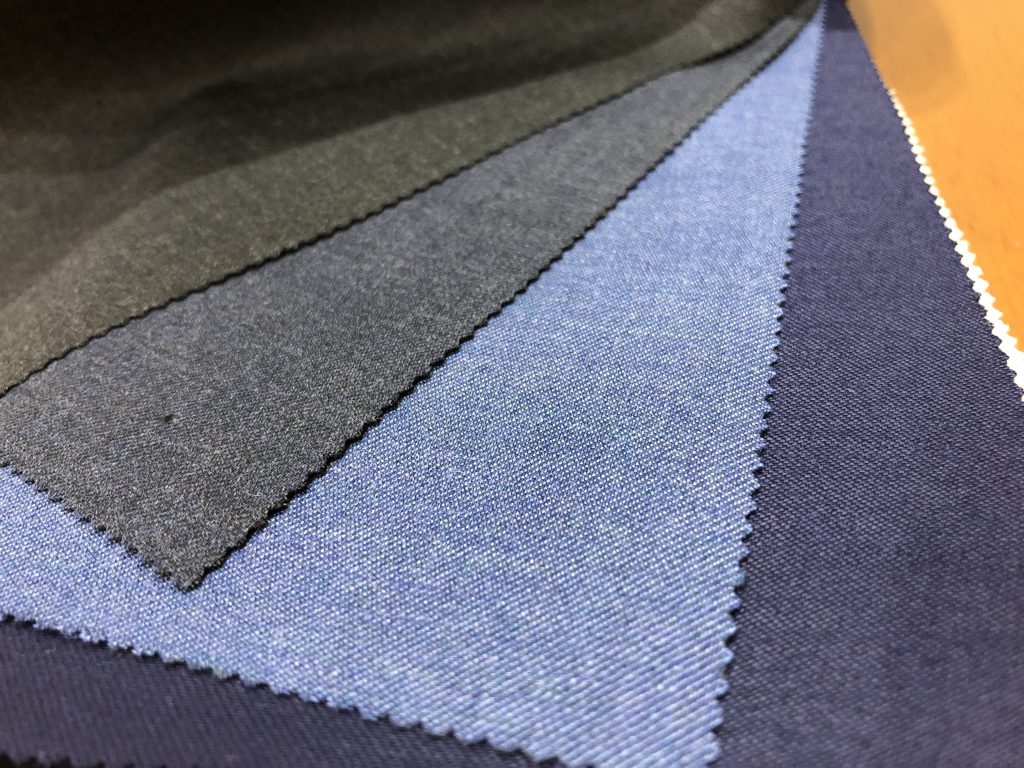 今回のコレクションにはスーパーストレッチオールシーズンのウール生地(織物)とデニム生地もご用意しています。