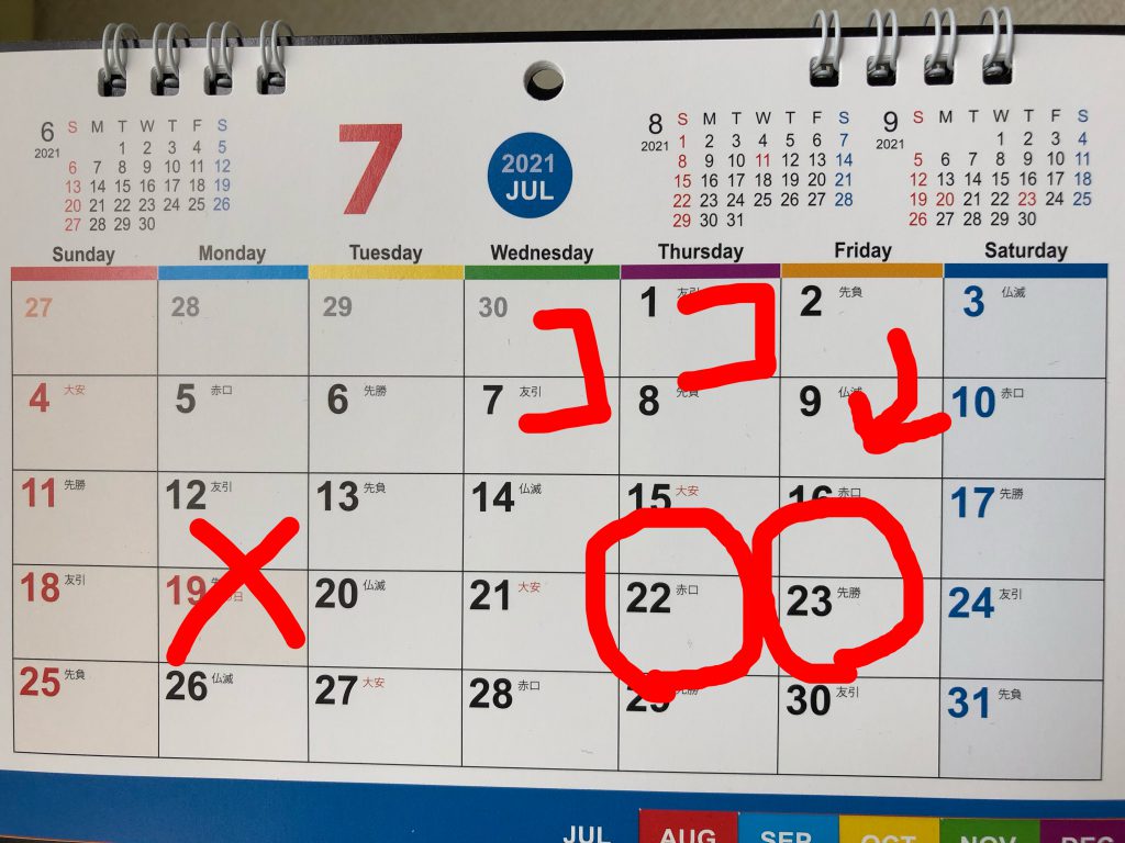7月は22、23日が海の日とスポーツの日に。。。