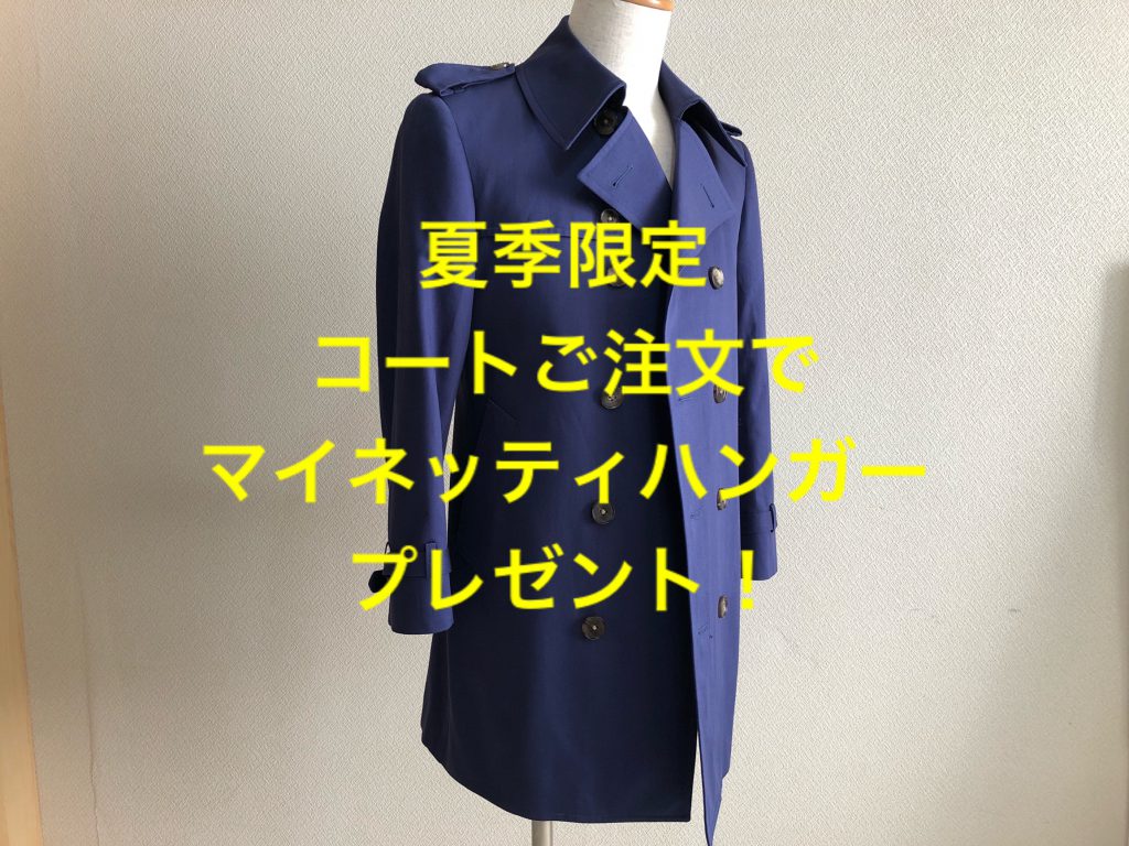 せっかくの自分だけのオーダーコートですから、ハンガーにかけた状態がストレスにならないようにしたいですね。