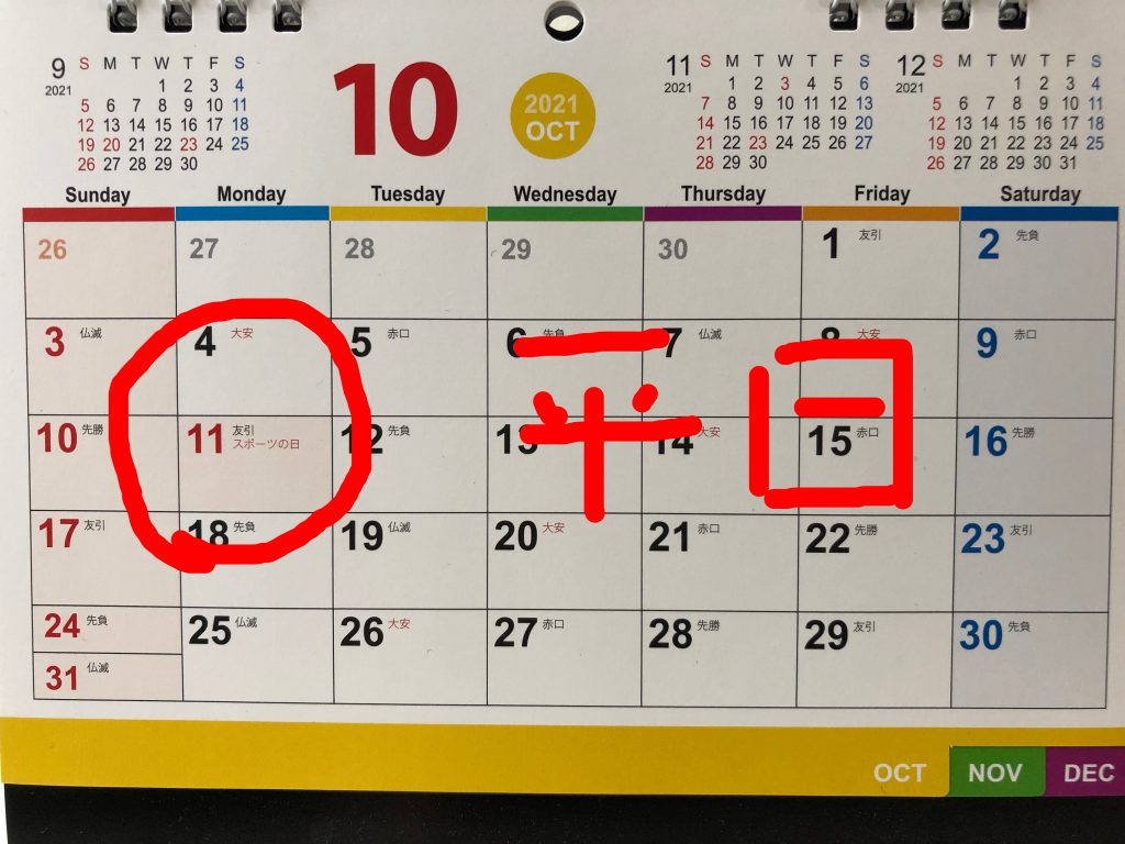 なんだかんだでリアルで日程の調整をする時はカレンダー見ながら確認するわけですが、そもそもボクのように平日も土日祝日も関係ない生活を送っていると卓上カレンダー上の情報をそのまま受け取ってしまうなんてことがございます。