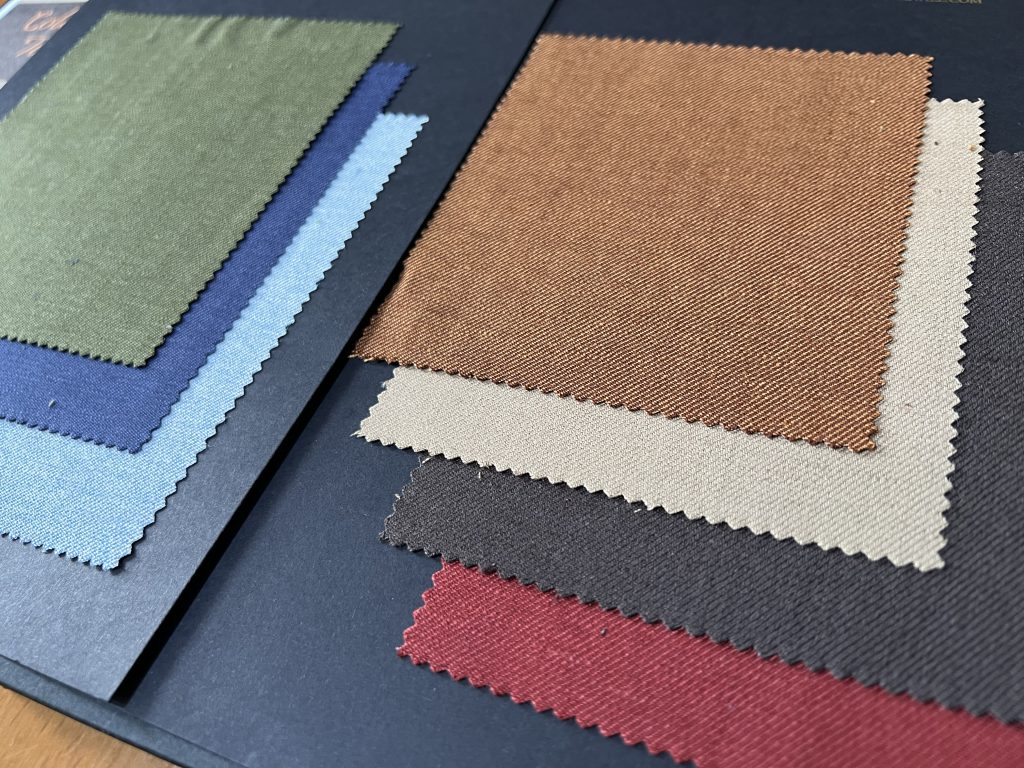 今回の7色展開のウール麻混のツイル素材もテラコッタ調、オリーブグリーンなど他では手に入らないけど、超絶カッコ良い一着になることが脳内シュミレーション出来ることろ。