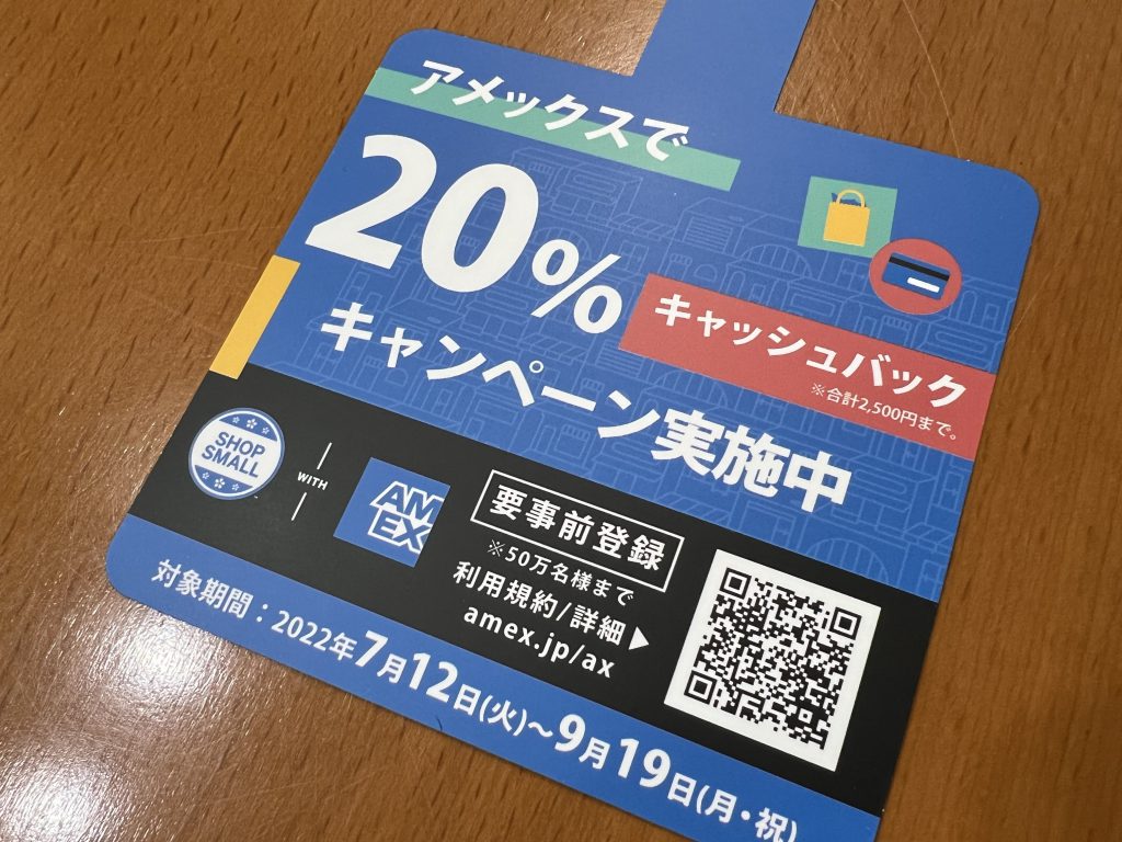 具体的には、アメックスカードでお支払い頂くと、20%キャッシュバック。