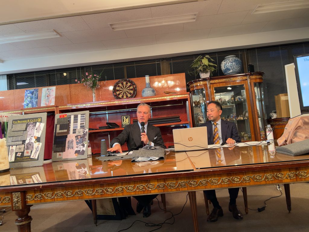 日本においてそのフォックスの生地を扱っている生地商社であるマルキシ本社にてそのコルドー氏の講演があるとのことで先日お伺いしてまいりました。