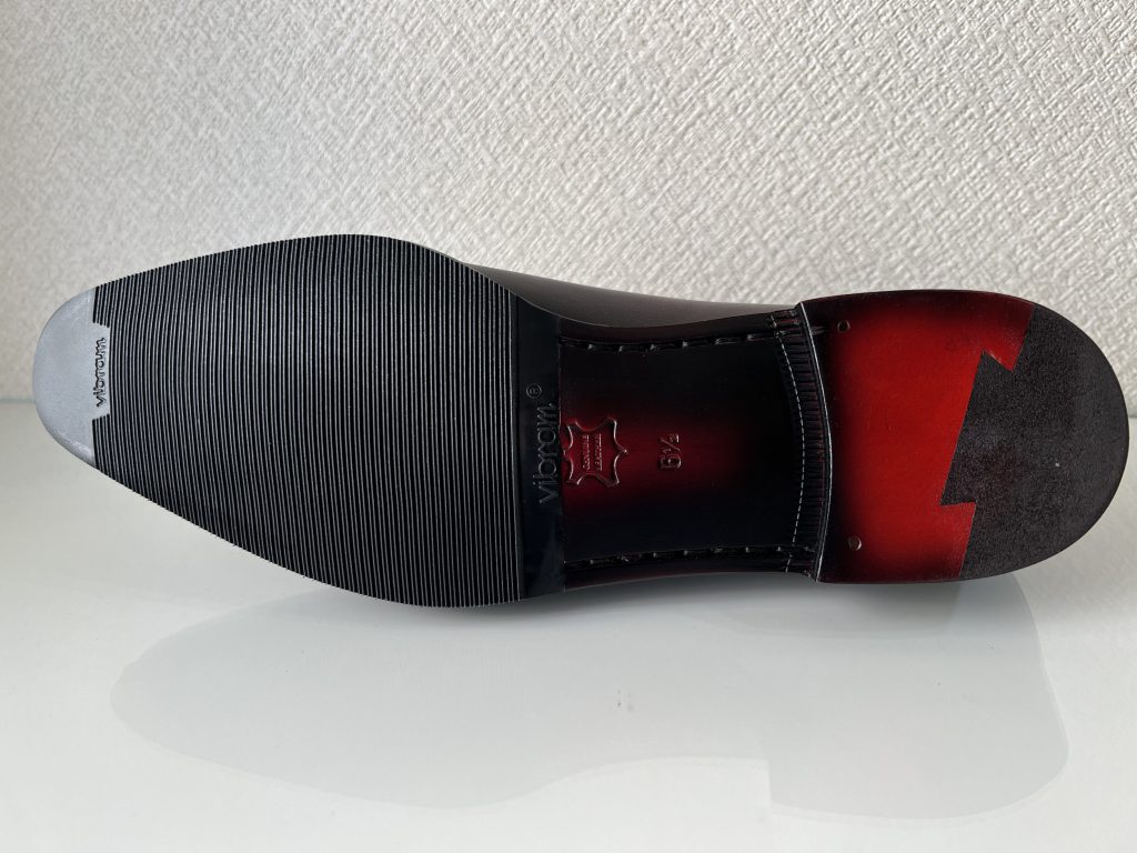 マテリアルはアッパーはスペイン産のカーフ、ソールはイタリア産ベンズレザー、オプションの半張りはビブラムです