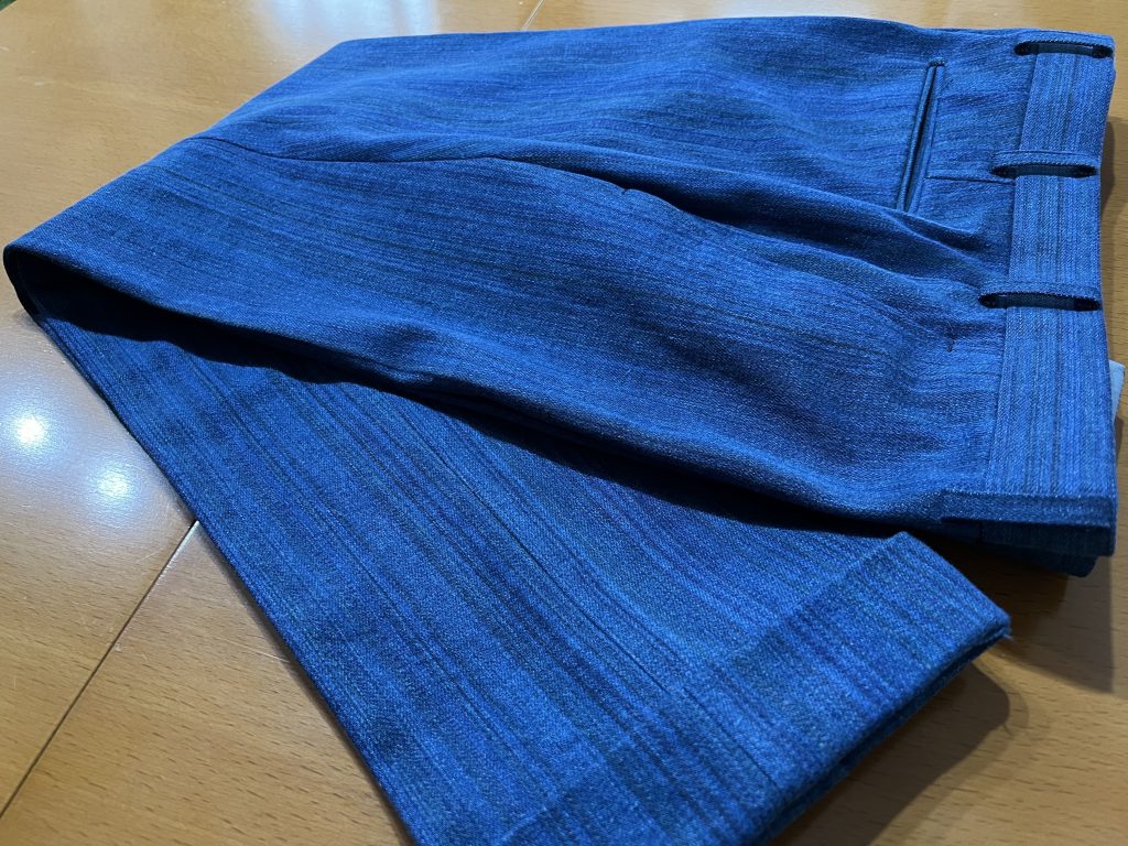 デニム素材のオーダーパンツはジーパンではないですからね。