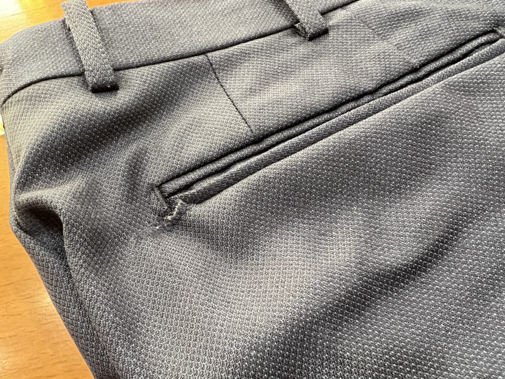 パンツで多いのがこのポケットのカンヌキ破れでしょうか。