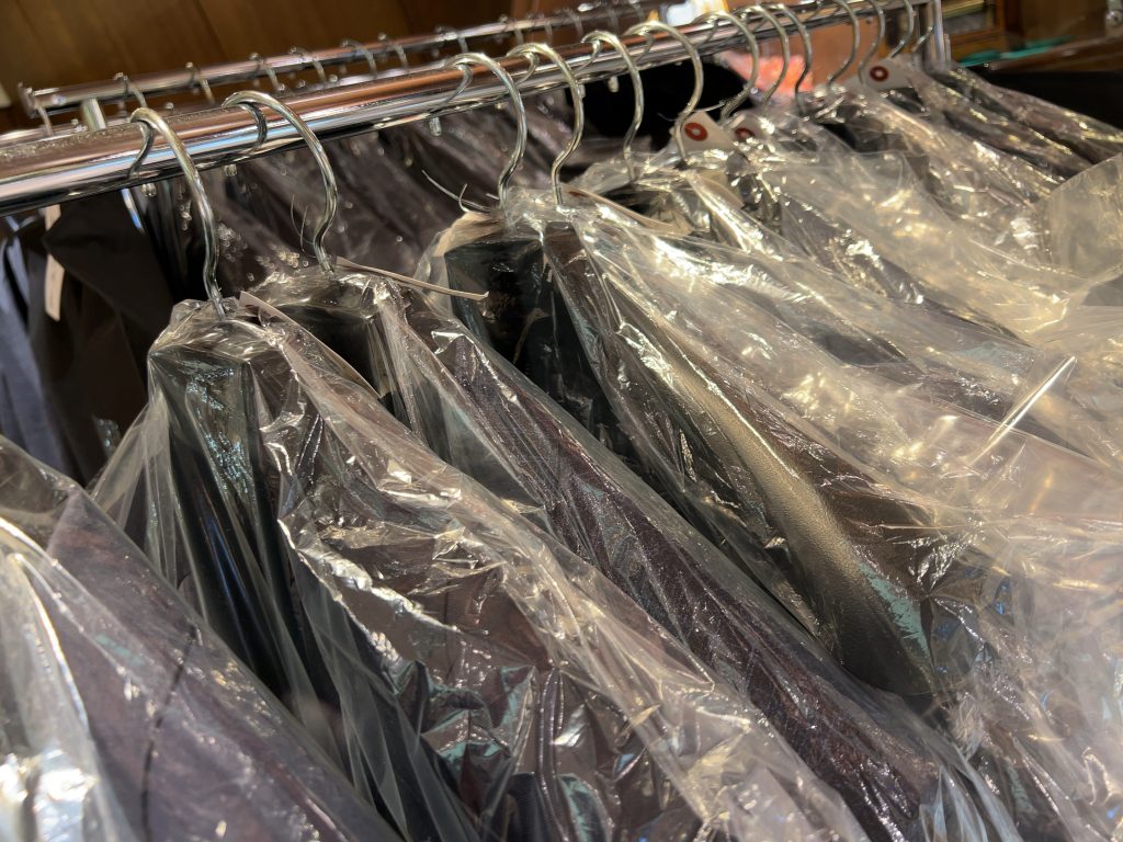 オーダースーツも納品前はこのように保護のためにこのようにビニール袋に一時的に入れております。