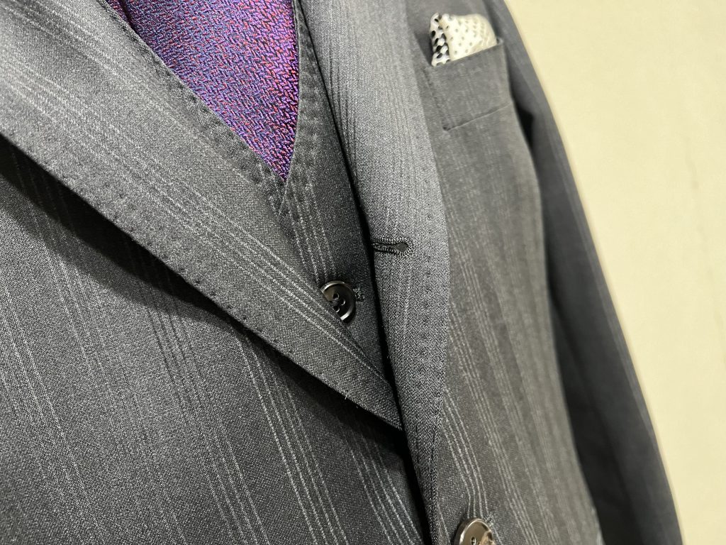 ここ数年の流れとしてはこの三つボタンスーツはかなり少なくなってきているように思います。