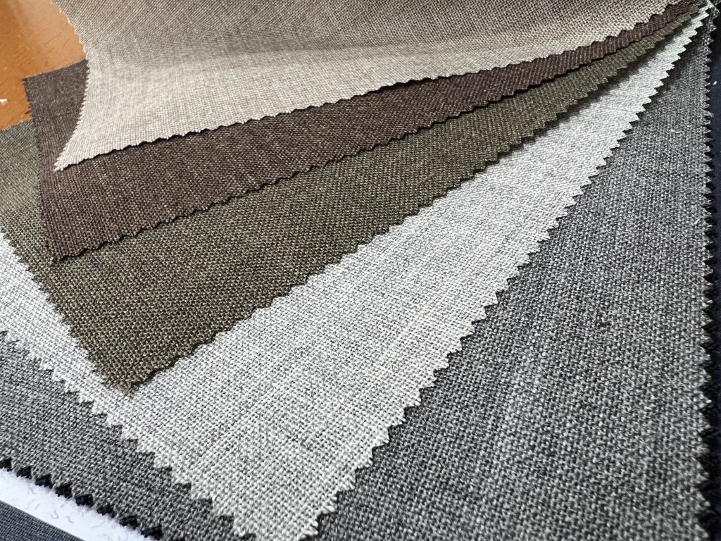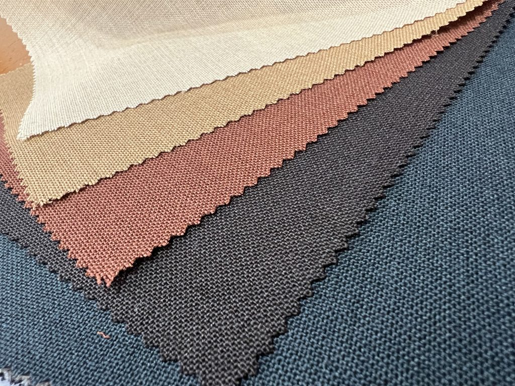 細番手の経糸双糸、緯糸単糸使いが多い滑らかなイタリア生地とはまったく違う風合いです。