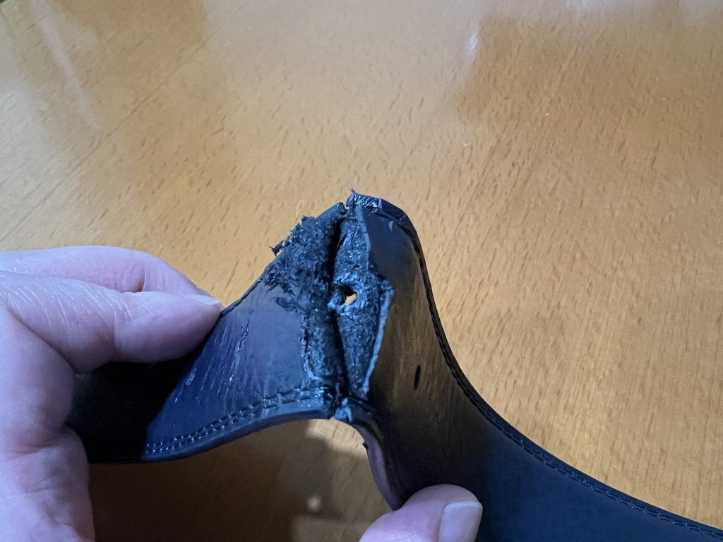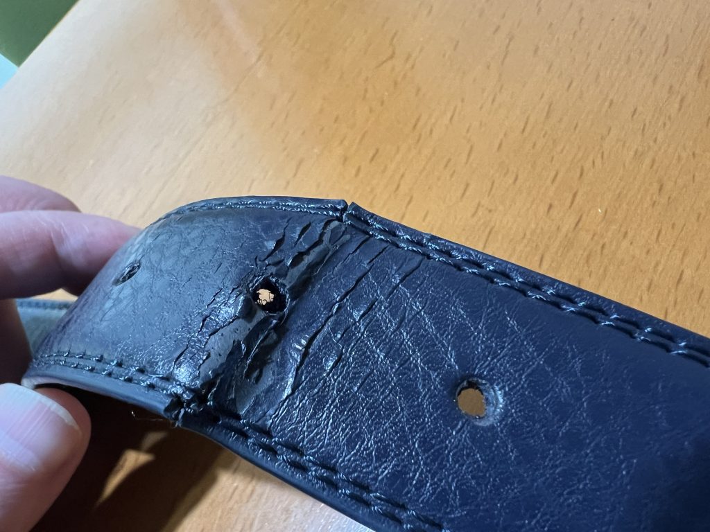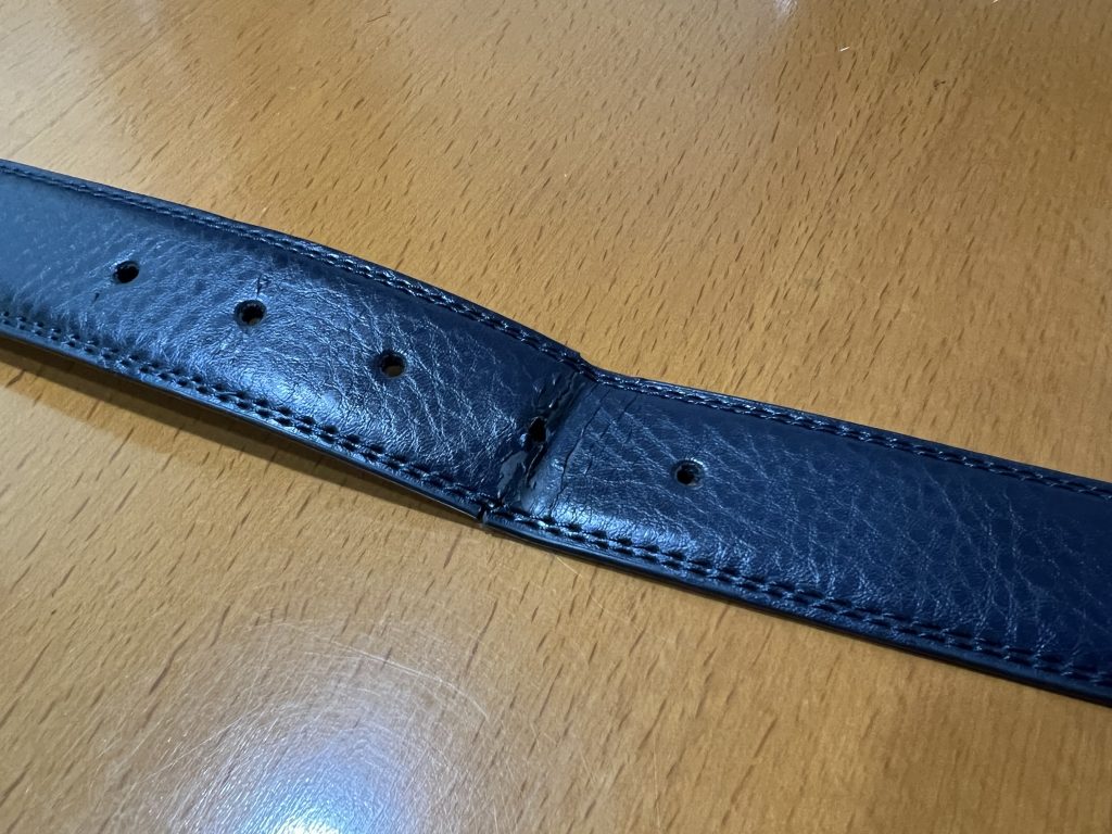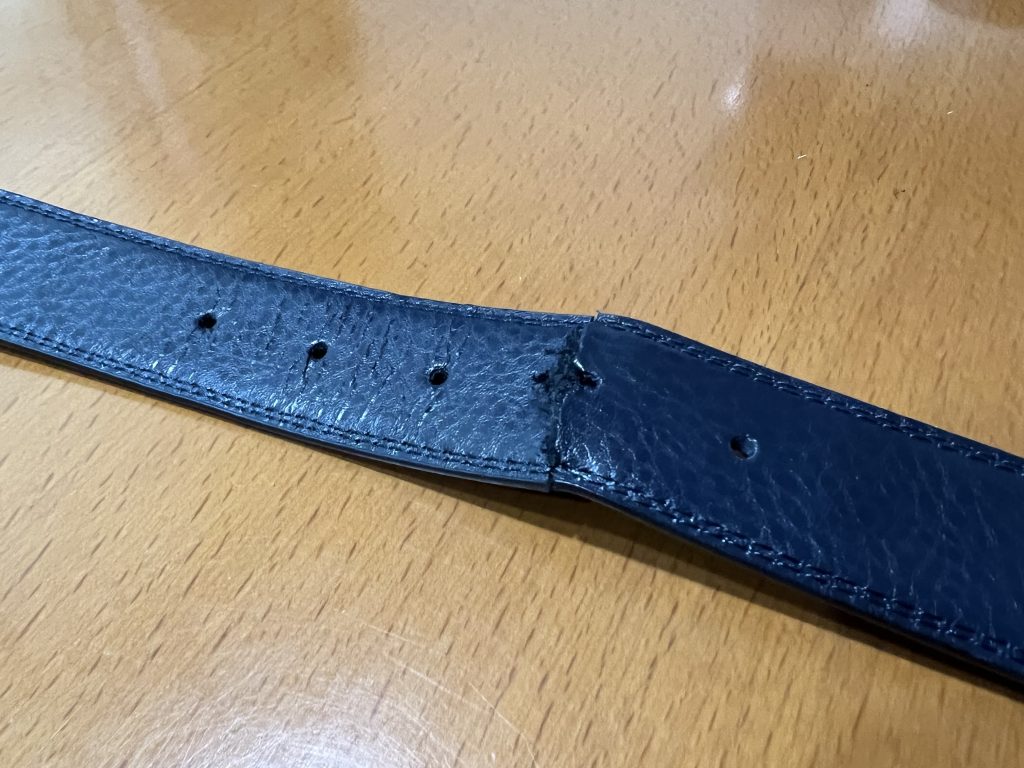 ということで、とあるところの催事場で手に入れた安価なベルトはやはり千切れています。