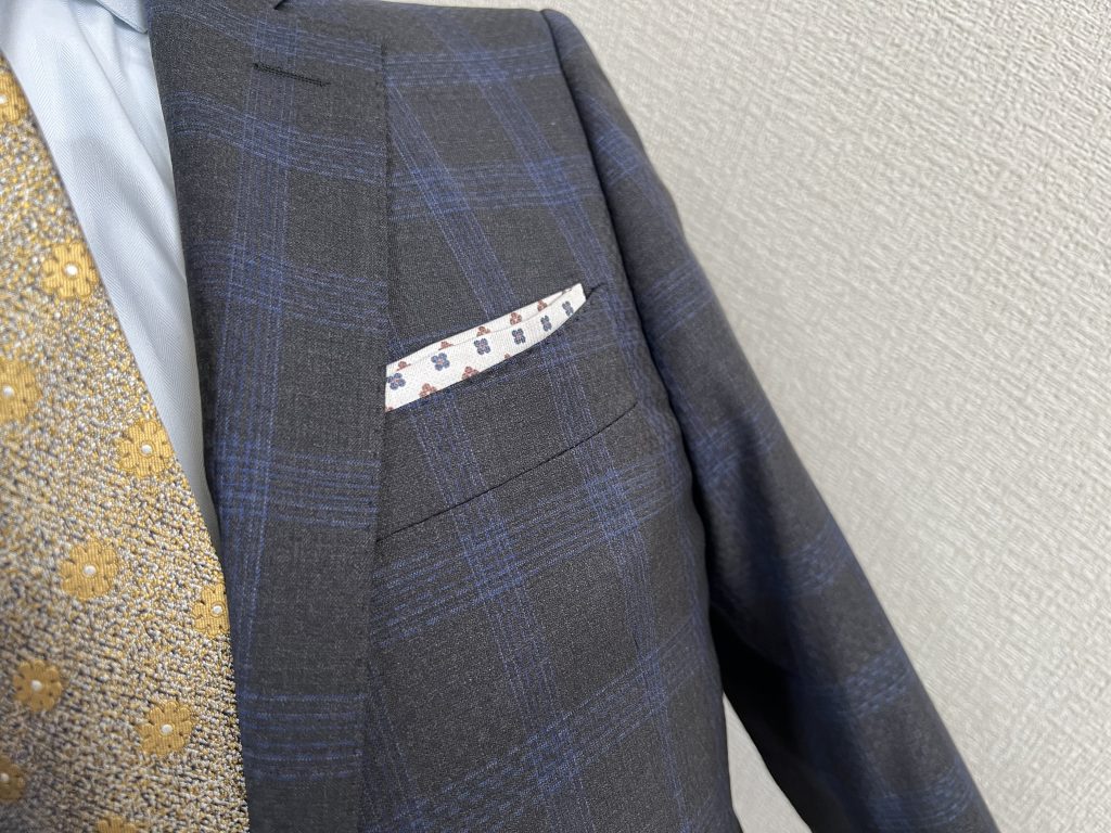 何もないよりもほんの少しだけポケットからのぞかせるこのチーフが何もない状態よりも着こなしている感がありますよね。