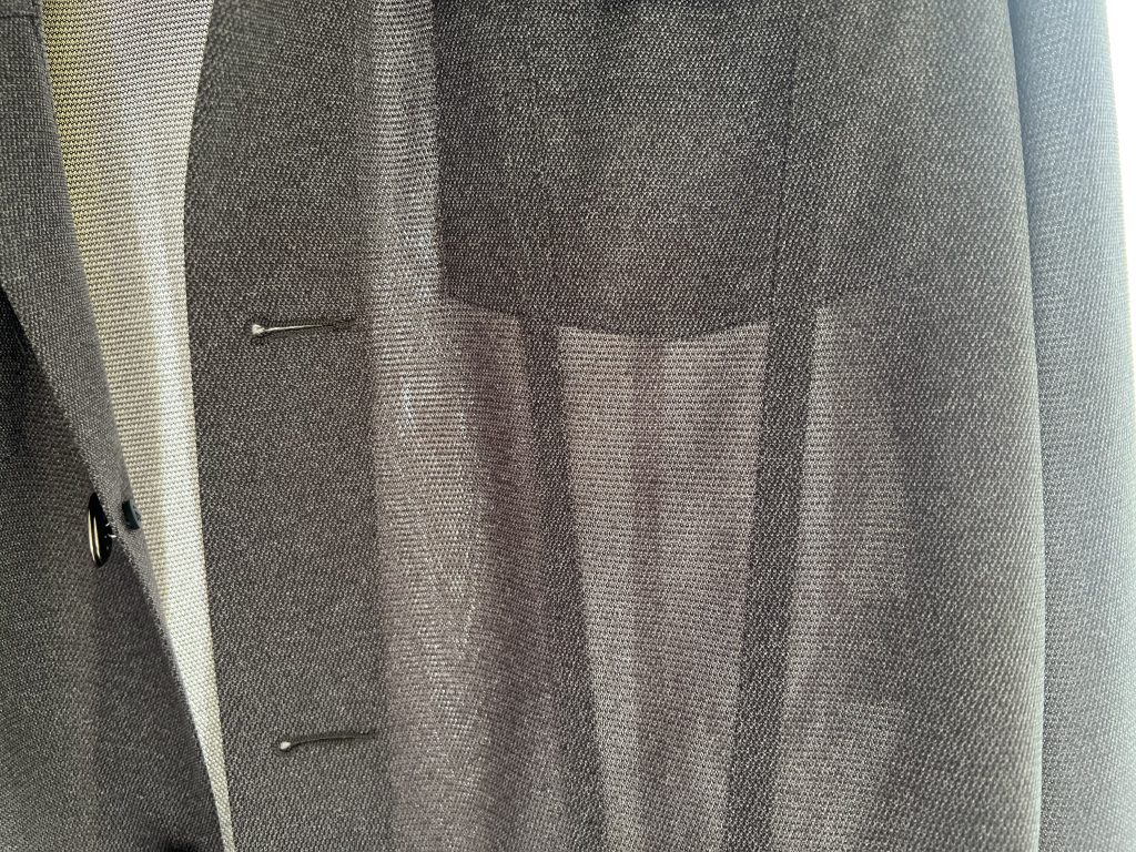 またウールのホップサックと呼ばれるメッシュ素材だとちょっとデリケート過ぎちゃいますし、ラフに羽織るイメージから逸れてしまいます。