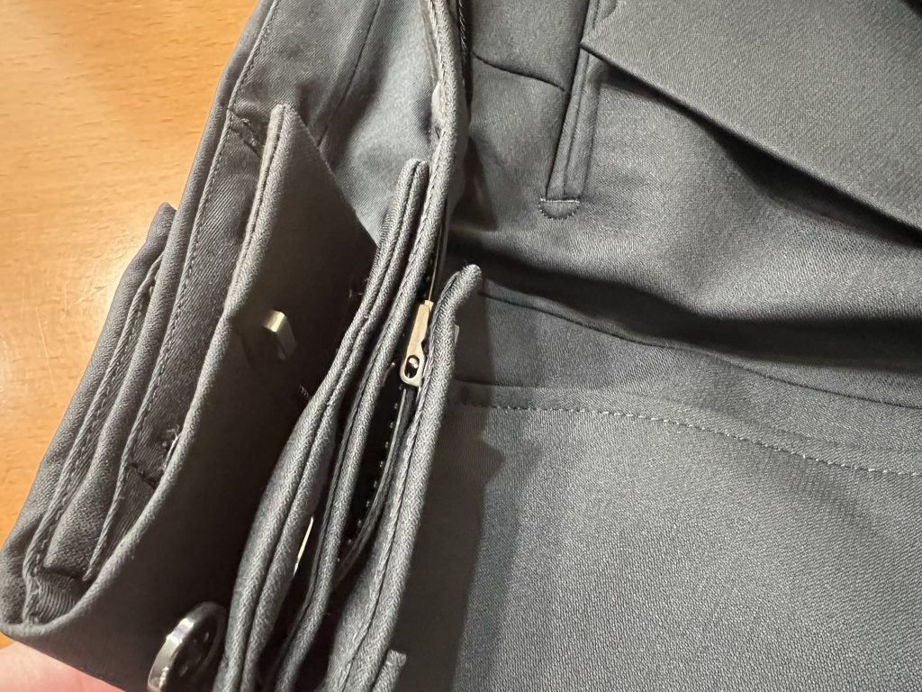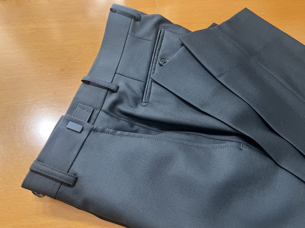このウエスト部分にはベルトをすると見事に隠れるようにもなっていますので、見た目も気になりません(あまり上着を脱ぐことはないと思いますが)