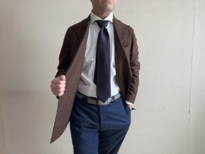 本当に沢山の生地が存在するオーダーメイドの世界ではそれも一つの方法ではありますが、立場や立ち位置、状況によってはこのようなシックなスーツも活躍する時があるでしょう。