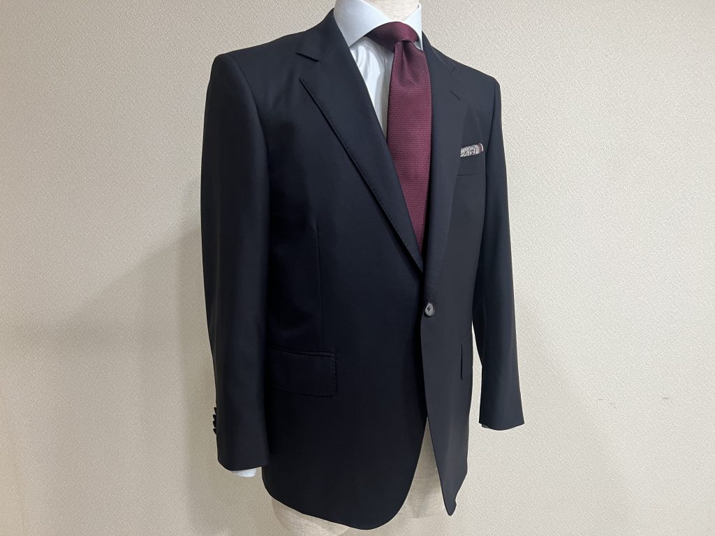 黒に見紛う濃紺の一着、ダンディに着こなしてもらいたい大人のカラーです。