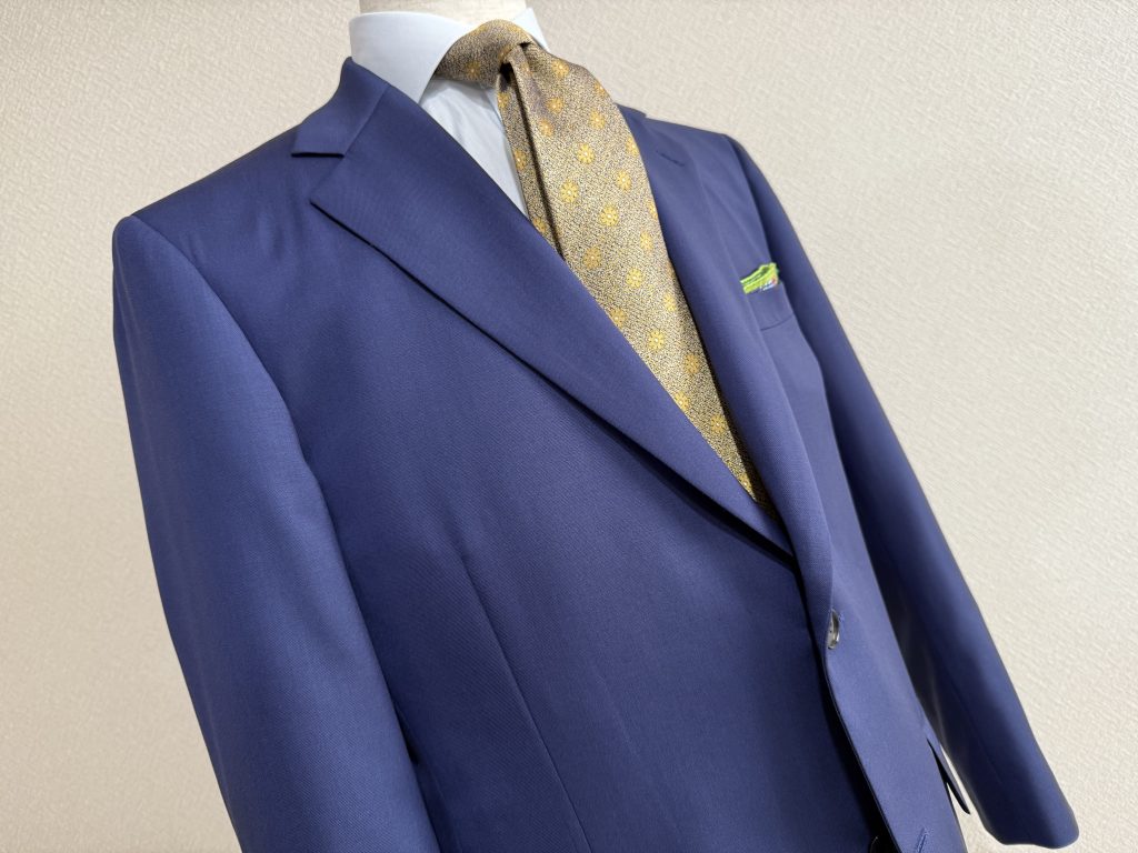 普通のネイビーを少し華やかな色に変えるだけで印象は変わります。