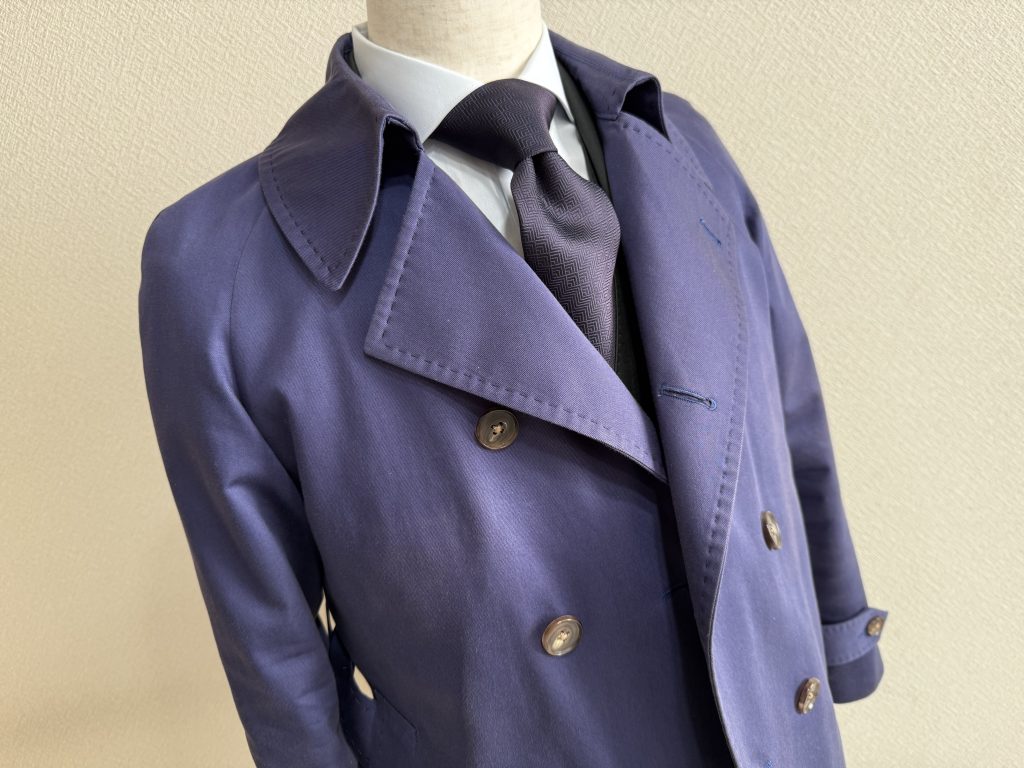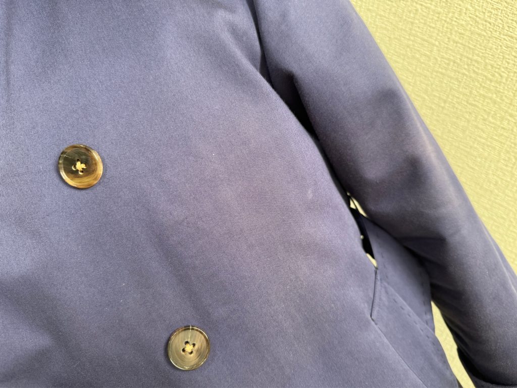 このブルーのトレンチコートは2021年8月に作成しておりますので、丸々4年半以上経過しています。